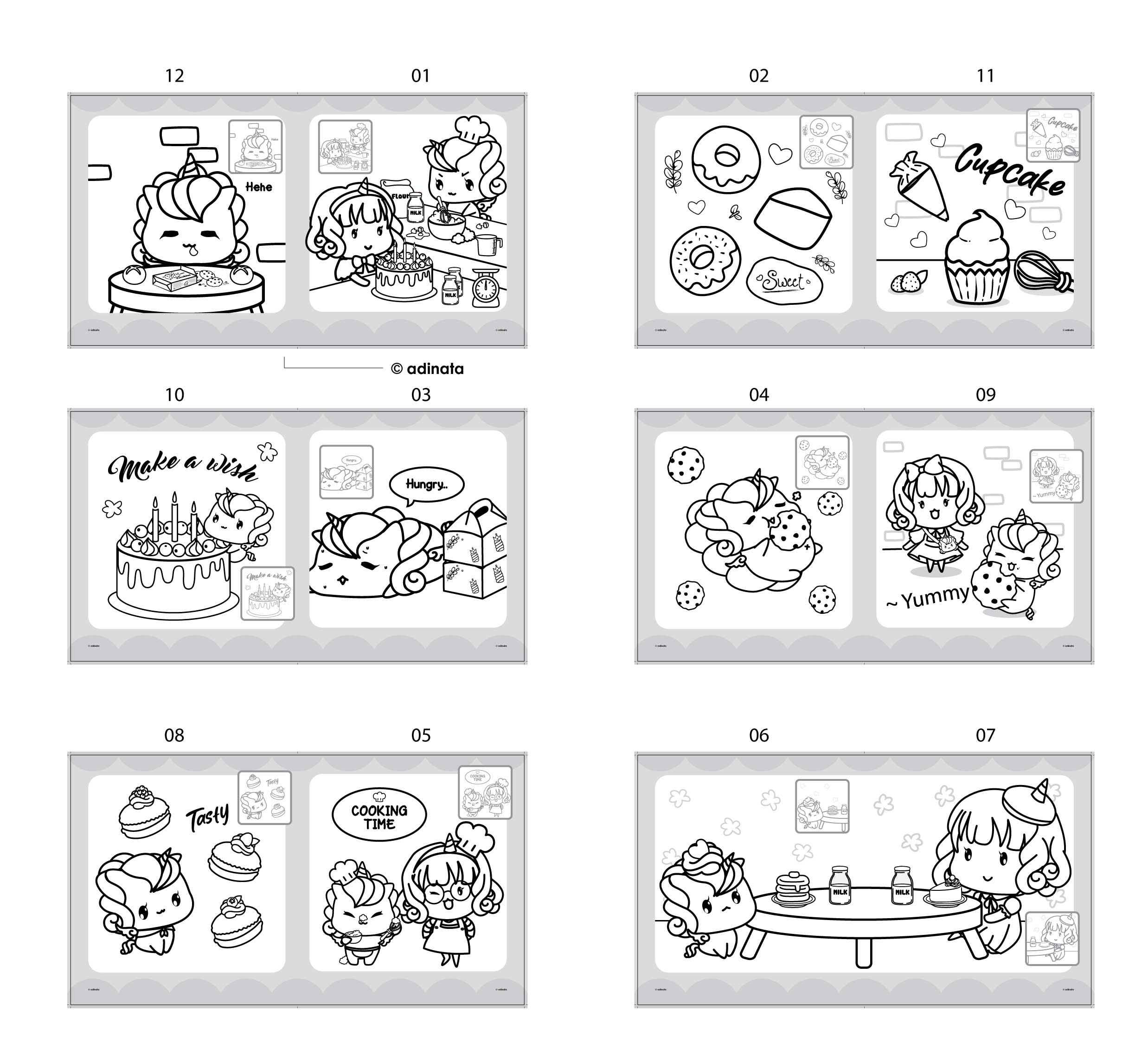 Buku mewarnai Mokonya berjumlah 12 halaman inner BW…