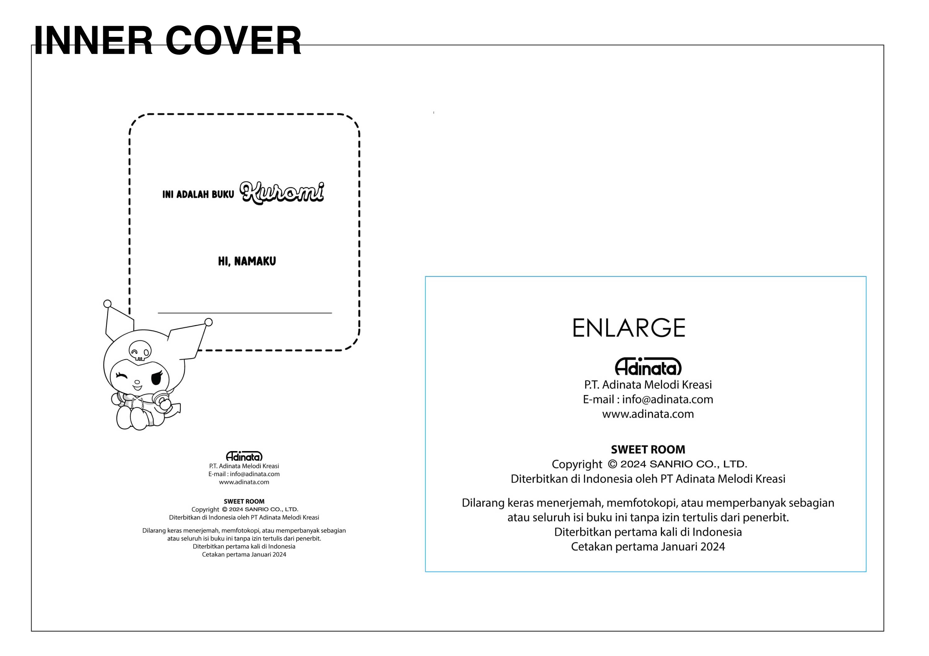 Buku mewarnai Kuromi berjumlah 12 halaman inner BW…