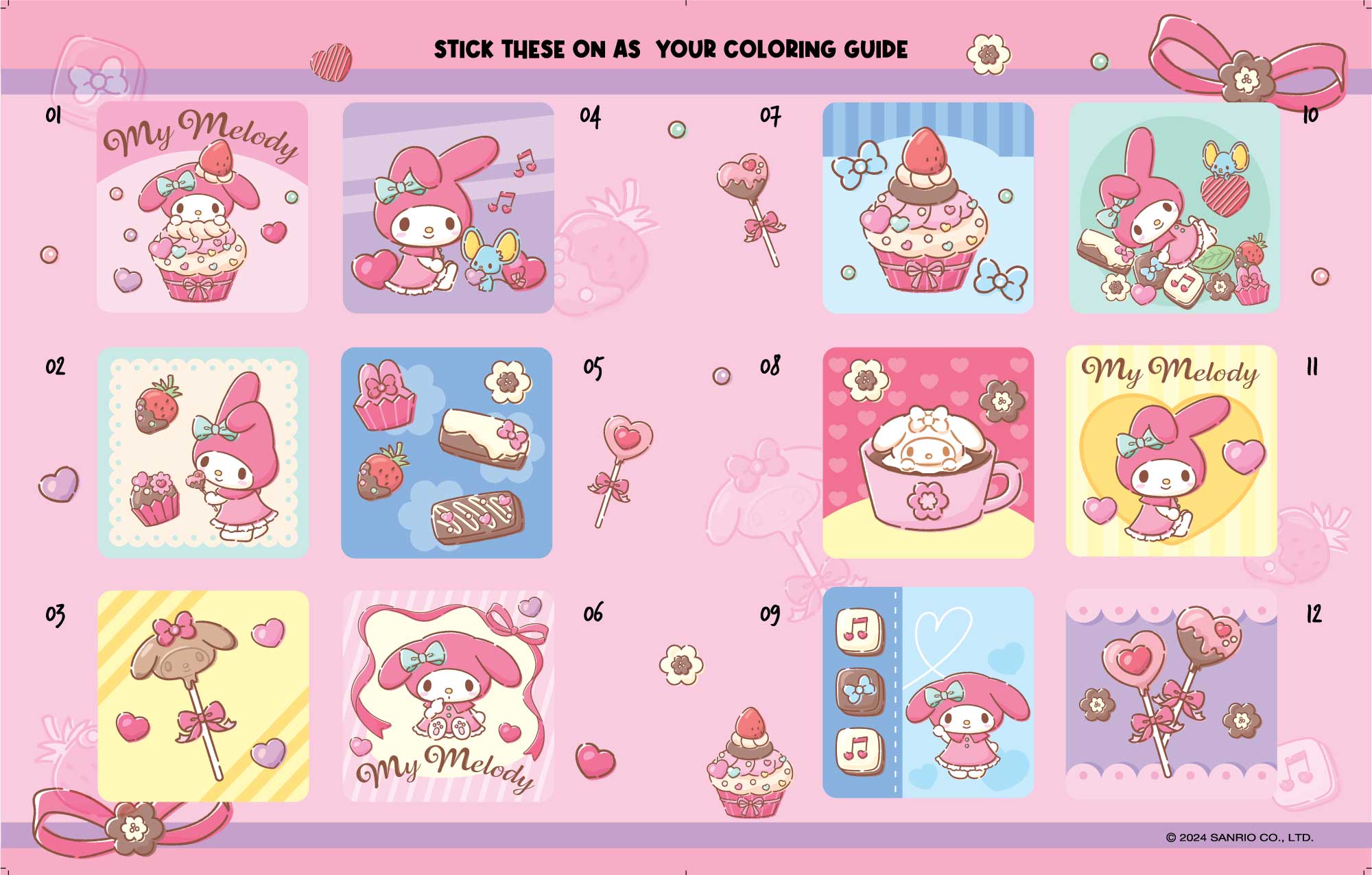 Buku mewarnai my melody berjumlah 12 halaman inner BW dan bonus sticker�?�¯�?�»�?�¿
