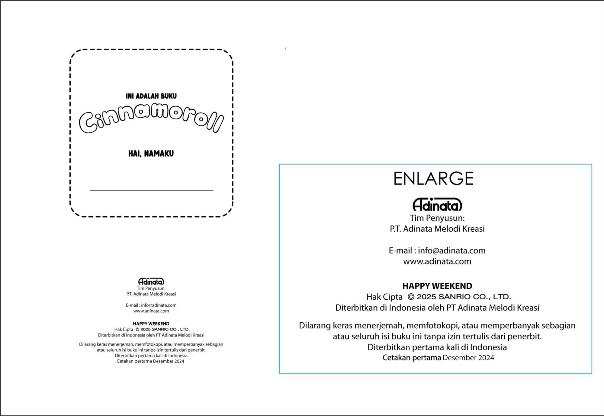 Buku mewarnai Kuromi berjumlah 12 halaman inner BW…