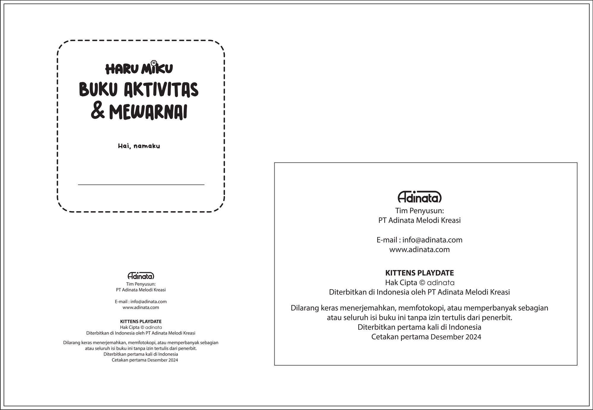 HMABL 2552-9802 Judul: KITTENS PLAYDATE -- Buku Aktivitas dan Mewarnai dengan ukuran besar cocok untuk anak usia 4 tahun ke atas.Kelebihan produk ini :-Ketebalan kertas : 80 GSM- Berwarna dengan gambar-gambar yang menarik- Gratis Stiker- Terdiri dari 20 Halaman