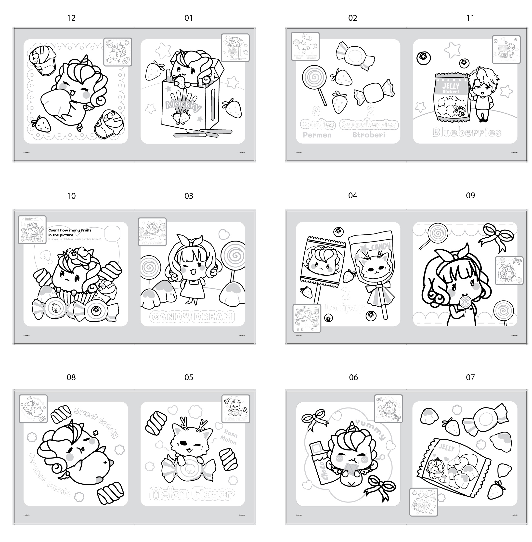Buku mewarnai Kuromi berjumlah 12 halaman inner BW…