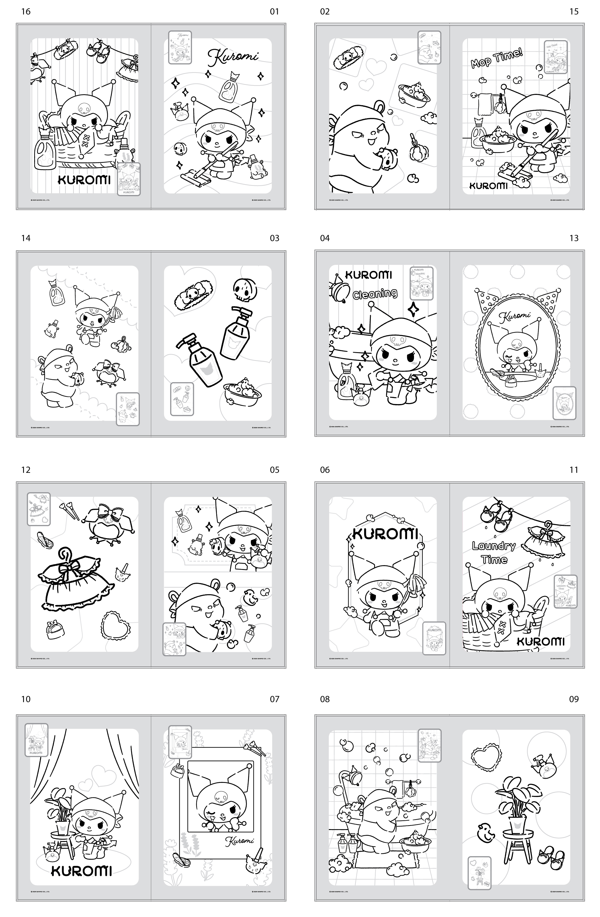 Buku mewarnai Kuromi berjumlah 12 halaman inner BW…