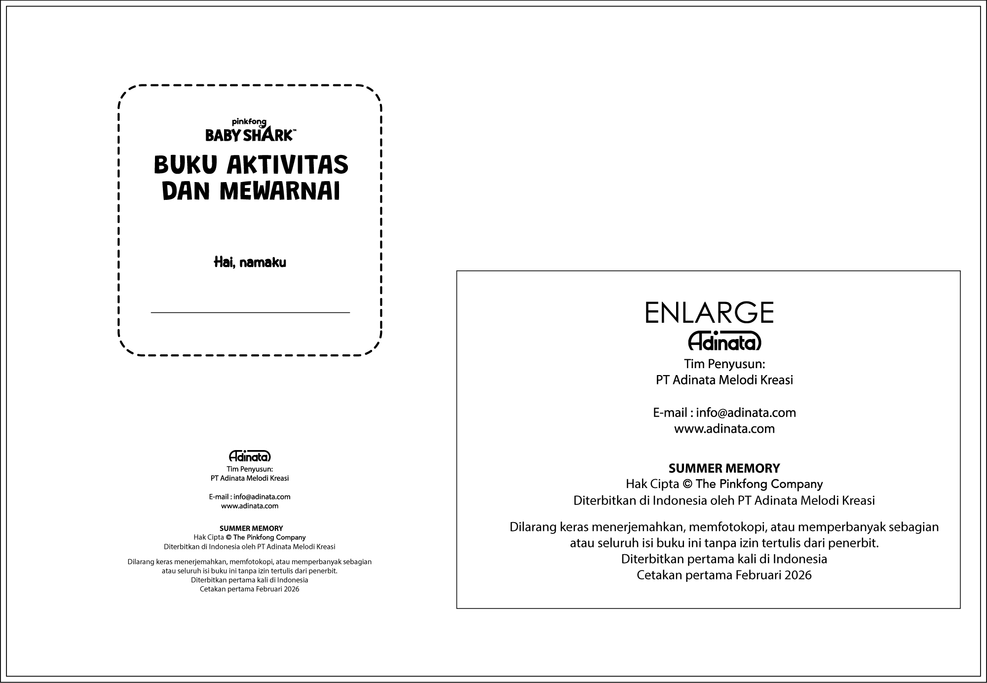 BKABL 2530-9841Judul: SUMMER MEMORY -- Buku Aktivitas dan Mewarnai dengan ukuran besar cocok untuk anak usia 4 tahun ke atas.Kelebihan produk ini:- Ketebalan kertas: 80 GSM- Berwarna dengan gambar-gambar yang menarik- Gratis Stiker- Terdiri dari 20 Halaman